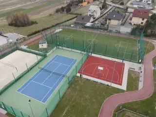 Boisko o powierzchni 1400m2, sztuczna trawa układana na shockpadzie 10mm. Boisko zlokalizowane na terenie Zespołu Szkół w Przegini.