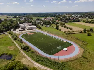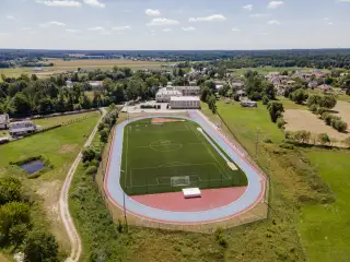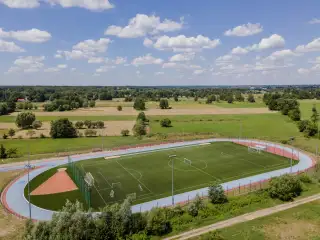 Boisko piłkarskie o powierzchni ponad 6 tyś,m2. Sztuczna trawa sportowa 50mm zasypana granulatem EPDM.