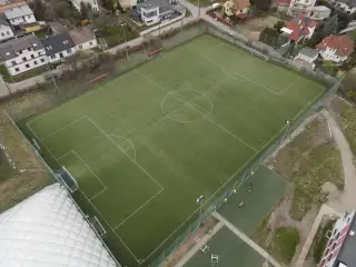Boisko treningowe klubu Cracovia, zlokalizowane przy ul. Wielickiej w Krakowie. Boisko o wymiarach 68 x 99, sztuczna trawa układana na shockpadzie 10mm.