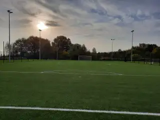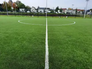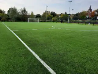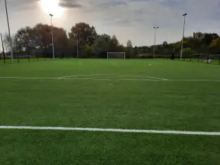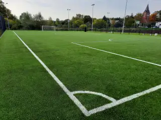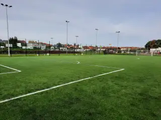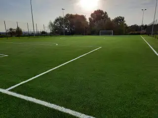 Sztuczna trawa sportowa 50mm zasypana granulatem EPDM. Pod sztuczną trawę na boisku zastosowano matę elastyczną typu shockpad X-PAD 10-200.