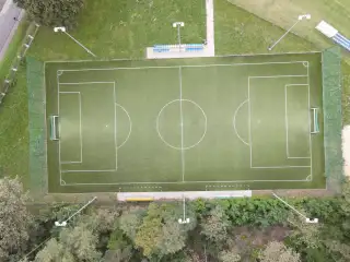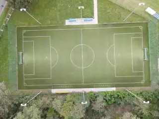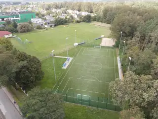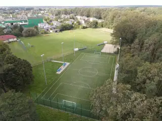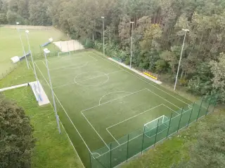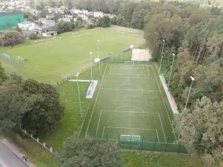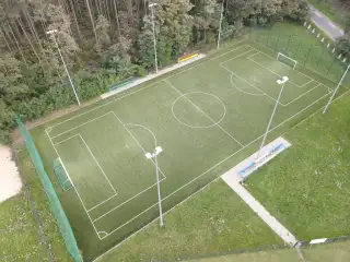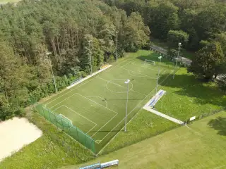 Boisko typu orlik, zlokalizowane w miejscowości Dobroń k. Łodzi. Trawa 50mm, na shockpadzie 10mm.
