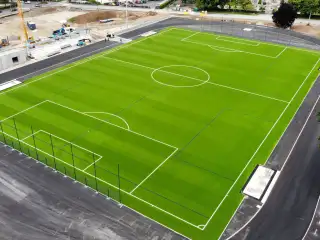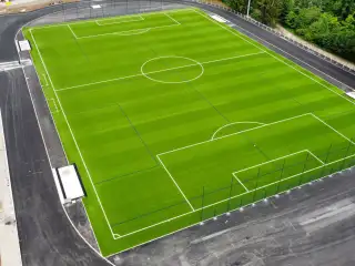 Sztuczna tkana trawa sportowa na boisku piłkarskim. Realizacja we współpracy z ACT Sports.