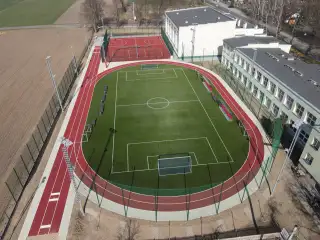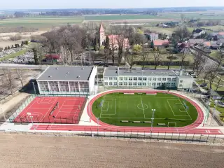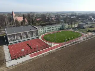 Boisko typu orlik, zbudowane przy Zespole Szkół w Ligocie Książęcej. Charakterystyczne dla tej realizacji są zakola ze sztucznej trawy między bieżnią a polem gry.