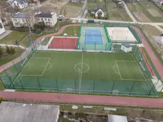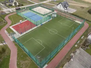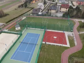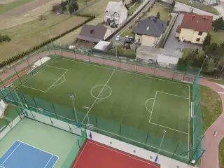 Boisko o powierzchni 1400m2, sztuczna trawa układana na shockpadzie 10mm. Boisko zlokalizowane na terenie Zespołu Szkół w Przegini.