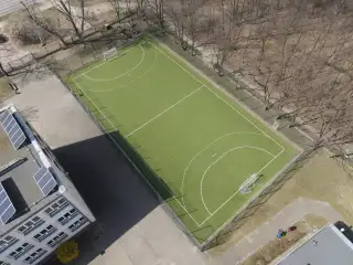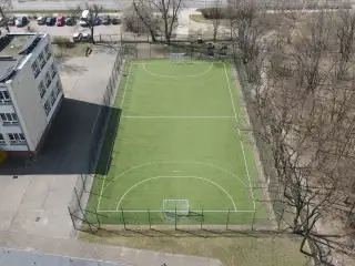 Boisko przyszkolne o powierzchni 1000m2, trawa piłkarska, bez zastosowania maty elastycznej.